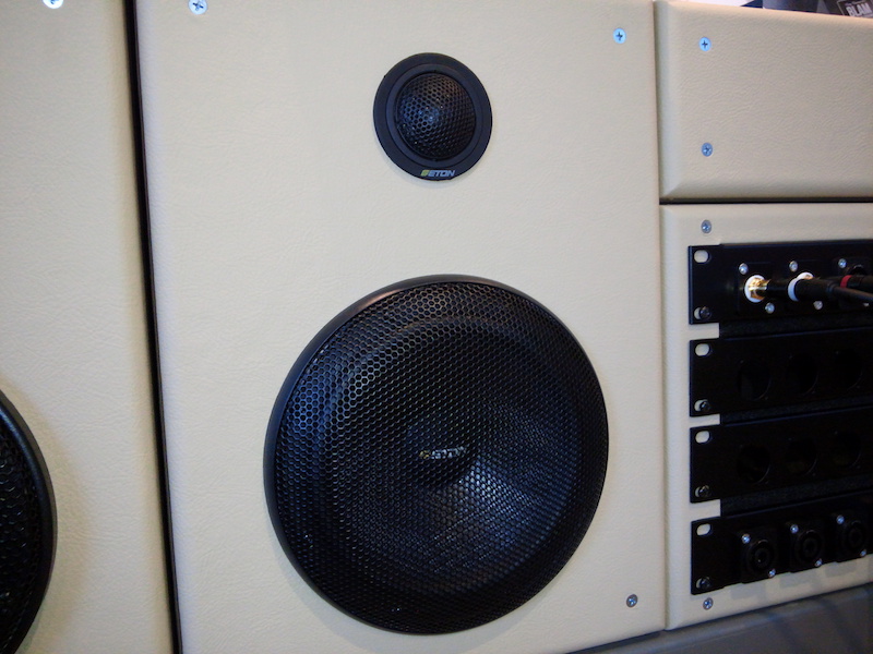 ハイレンジユニットが大きいのでどうしても違和感はあるかと思いますが、出来るだけ埋め込んだ形状として少しでも自然に見えるように形を作らせていただきました。